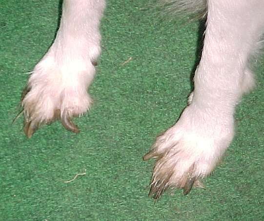 This poor dog will have foot problems if his nails are left unclipped for too long. This is neglect!