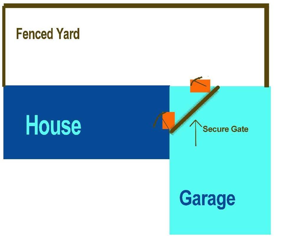 If you have the above setup, there must be a permanent gate or structure to prevent dog from running out of the overhead garage door.